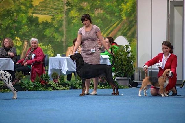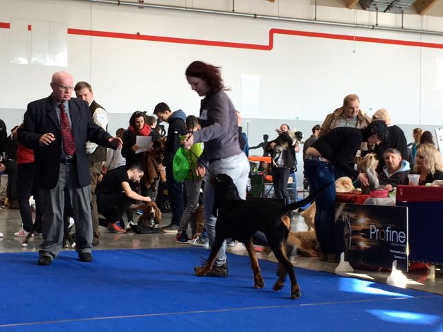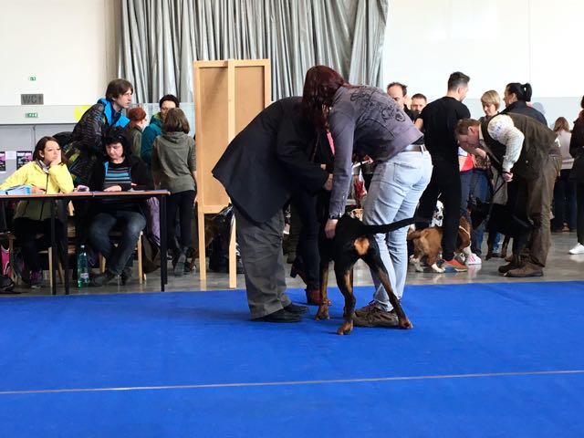 Oblastní jihočesku výstavou psů všech plemen zahájila Contesa svou výstavní karieru. Jelikož oblastní výstavy, jsou menší a tím pádem i klidnější, jsou skvělé pro zatím nezkušené pejsky a třeba i páníky. Skvělé pro socializaci...Já jsem si tuto první výstavu Conty nechtěla nechat ujít, zařídila jsem si pro Donn dozor a jela se podívat s Aishou alespoň na základní kruh, jak to Conty půjde a jak se bude panu rozhodčímu líbit. Conty si vedla moc dobře, krásně se nechala od pana rozhodčího prohlédnou a pěkně stála v postoji. Žádné známky strachu nebo bázlivosti. Panu rozhodčímu se velmi líbila, dostala krásný posudek. Mám velkou radost, že jsou naše psí dětičky nejen exter.povedení, ale hlavně i povahově přátelští a nebojácní 🙂