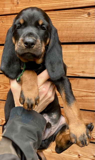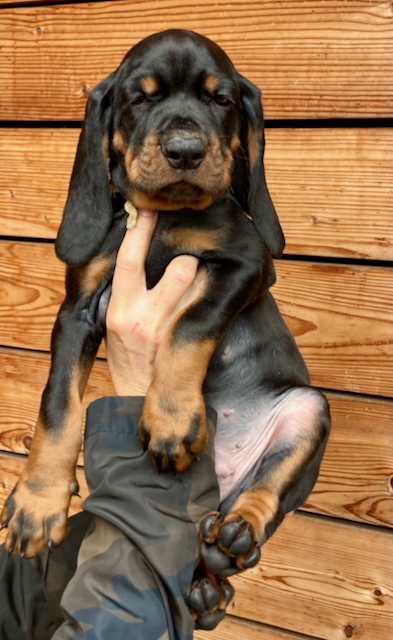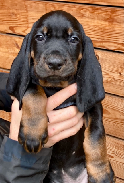 S radostí oznamujeme, že 3.9.2025 přivedla naše Chardy na svět 7 krásných, silných prcků plemene Black and Tan Coonhound. Tento plánovaný vrh je pro Chardy druhým vrhem v pěti letech. Vše zvládla na jedničku, porod přirozený o štěňata se výborně stará a štěňátka rostou jako z vody.